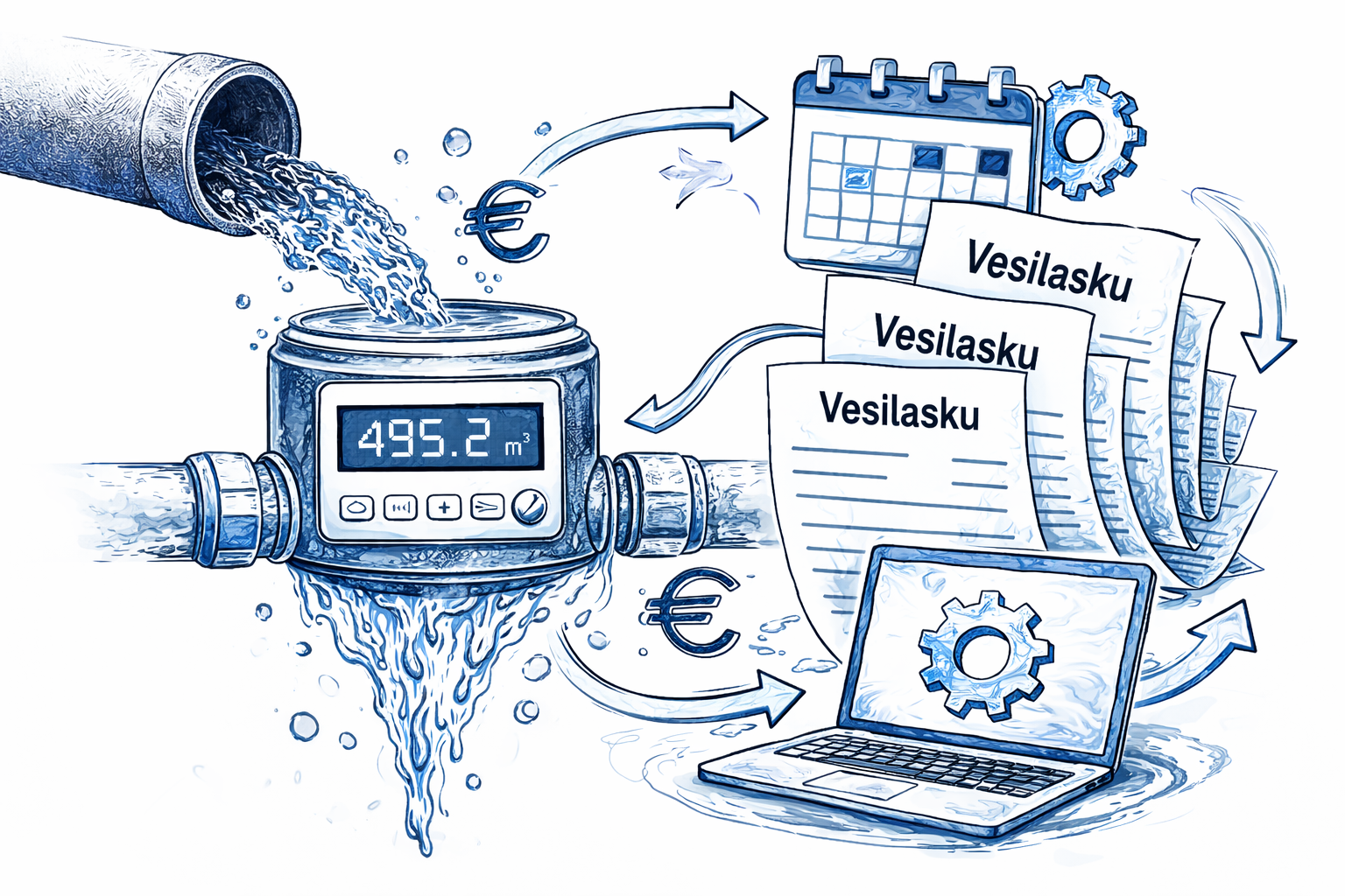 Yksi vesilaskutusohjelma hoitaa kaiken – vähemmän käsityötä, vähemmän virheitä ja pienemmät kokonaiskustannukset.
